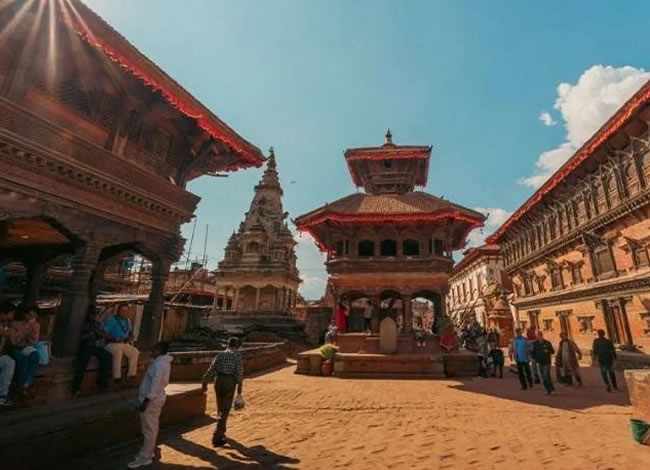早餐后前往帕坦杜巴廣場,廣場呈長方形,東邊是皇宮,塔萊珠女神廟、金廟、曼嘉噴水池等,西 邊則是造型各異的廟宇,其中最為著名的是黑天神廟、黑天寺、哈里??ㄉ駨R、毗濕奴神廟、 毗斯瓦納特神廟等。其建筑藝術(shù)也非常高超、精湛,在世界建筑史上占有一席之地,被稱為 "露天的博物館"。游覽始建于 2000 多年前的世界上最輝煌的佛教寺廟“斯旺那布廟”(Swayambhunath 世界文化遺產(chǎn),俗稱“猴山”) 【約 1.5 小時】,來這里祭祀 的有尼佤爾尼姑、藏族喇嘛、佛教及印度教之貴族朝圣者,也許斯旺那布塔是觀察尼泊爾各個宗教融洽相 處的最佳地方。整體建筑古樸,味道十分濃郁,民房的窗飾極其繁復,寺廟建筑的細部一樣精細。寺廟、 佛塔、銅飾等組合在一起,再加上成群的鴿子飛來飛去,成群的猴子蹦來蹦去,形成獨特的景觀。游覽始建于 13、14 世紀的巴德崗杜巴廣場(Bhaktapur Durbar Square 世界文化遺產(chǎn))【約 2 小時】:55 窗宮(The Palace of 55 windows)、 巴特薩拉女神廟(Batsala Devi)、尼亞塔波拉塔(Nyatapola Temple)等。這里可以選購著名的巴德崗木雕工藝品和陶制品。十五世紀以后,巴德崗杜巴廣場是巴德崗的城市核心,這里有長達500 年馬拉王朝的王宮,包括許多各具藝術(shù)特色的宮殿、庭院、寺廟、雕像等,被譽為“中世紀尼泊爾藝術(shù)的精華和寶庫”,素有“露天博物院”之稱,展現(xiàn)出一幅中世紀尼泊爾的瑰麗圖畫。后前往加都以東 30 公里的美麗的尼瓦爾人村莊納加闊特(海拔:2000 米)。這里以壯美的喜馬拉雅雪山日出、日落而聞名,是著名的喜馬拉雅觀景臺。因為這里是加德 滿都山谷觀賞喜瑪拉雅山脈視角最廣且最佳的地方。在這里觀賞喜瑪拉雅雪山全景,喜馬拉 雅雪山就像一條玉帶橫掛在空中。如果能見度高,還能看到世界第一高峰-珠穆朗瑪峰。這 里正對著喜瑪拉雅山脈的二十多座 6000 米以上、包括珠珠穆朗瑪峰、雅安納普爾納山峰、 岡底斯圣山等世界著名雪峰的連綿山丘。(在此可以看到十座世界最高山峰中的五座)。傍晚在納加闊特度假 村內(nèi)用晚餐,品餐觀景,是有多么的愜意舒適!
