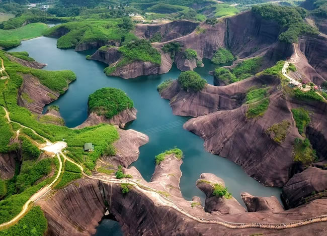 抵達(dá)后,前往郴州抖音最火網(wǎng)紅打卡地【高椅嶺】(游覽時(shí)間約3.5小時(shí))。車覽【馬皇丘大峽谷】,峽谷原為一條小路穿行而過,現(xiàn)為一條漂亮的馬路,卻造就了另一種景觀,其中絕壁上的酷似女性私處【陰元石】更是丹霞景觀一絕。而后徒步高椅嶺,欣賞絕美之丹霞碧水,【巨蜥臥水】。先是歷經(jīng)【瓜石頸】之天梯險(xiǎn)境,再是近距離感受【羊牯石】景區(qū)之絕美。從高處往下鳥瞰瓜石頸,一條清澈美麗的“天河”蜿蜒穿行在丹霞地貌之間,或?qū)捇蛘?,蔚為大觀,從羊牯石景區(qū)原路返回至瓜石頸,沿另一條石級(jí)自上而下欣賞水中“巨蜥”形神兼?zhèn)渲^美,驚于大自然的造化與鬼斧神工。這一片丹霞碧水,因?yàn)榈は嫉孛仓苓呌衅恋乃蔹c(diǎn)綴,美得一塌糊涂。